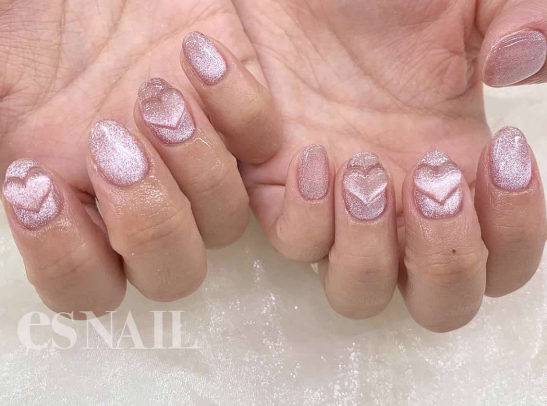 マグネットカラーをベースに、ショートネイルでも楽しめるこの時期ぴったりのハートネイル♡