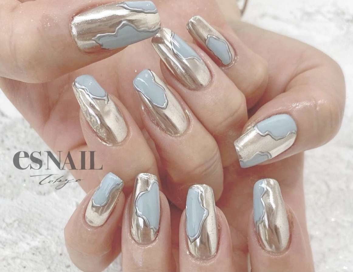 春カラーでニュアンスデザイン💙🤍
