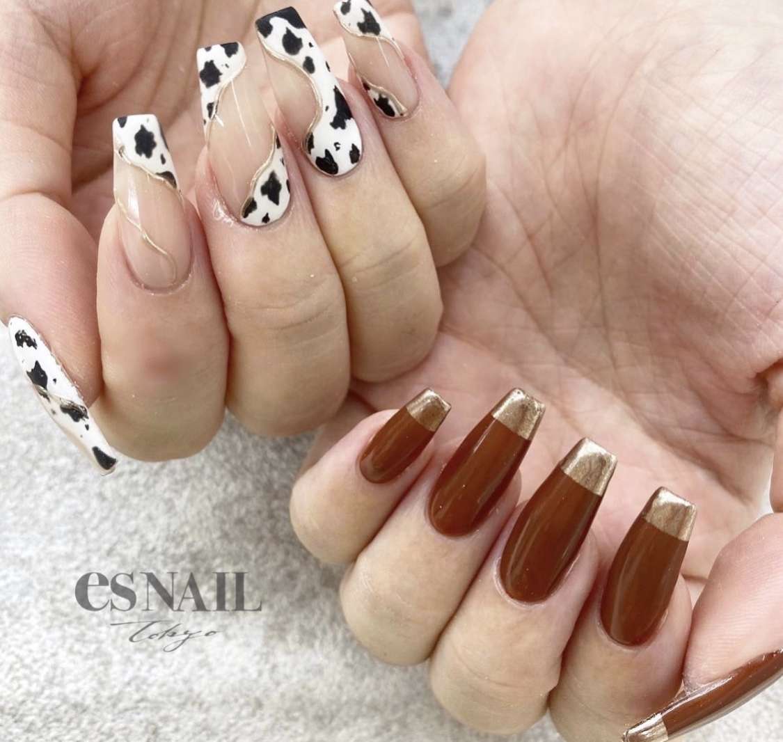 秋のトレンド柄、"cow"柄🐄とmirrorネイルの